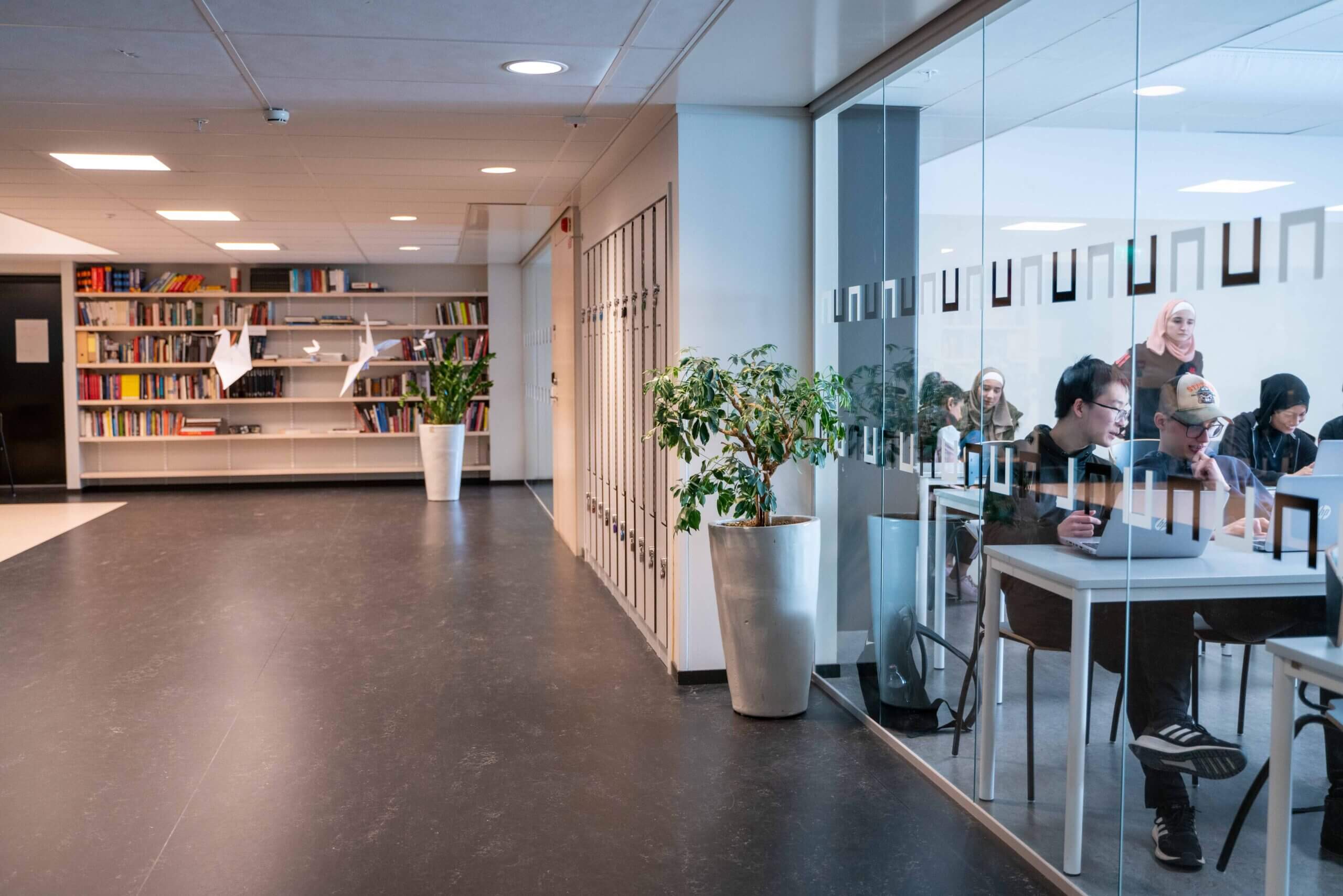 Vi tror att grunden för ett framgångsrikt lärande är en arbetsmiljö med trygghet och studiero, vilket vi har fokuserat på i våra lokaler. Vi har stora klassrum med ny teknik, större torgytor för social samvaro men också många mindre ytor där man kan fokusera på sina studier.